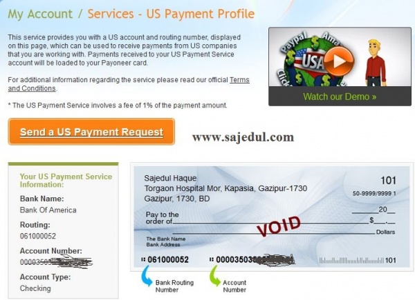 Payoneer এর Virtual US Bank Account
