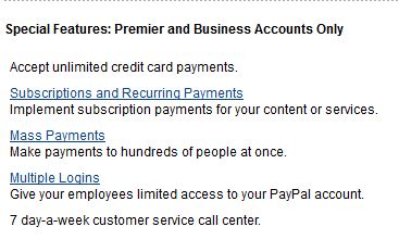 পেপাল Premiere Account এর Special Features: